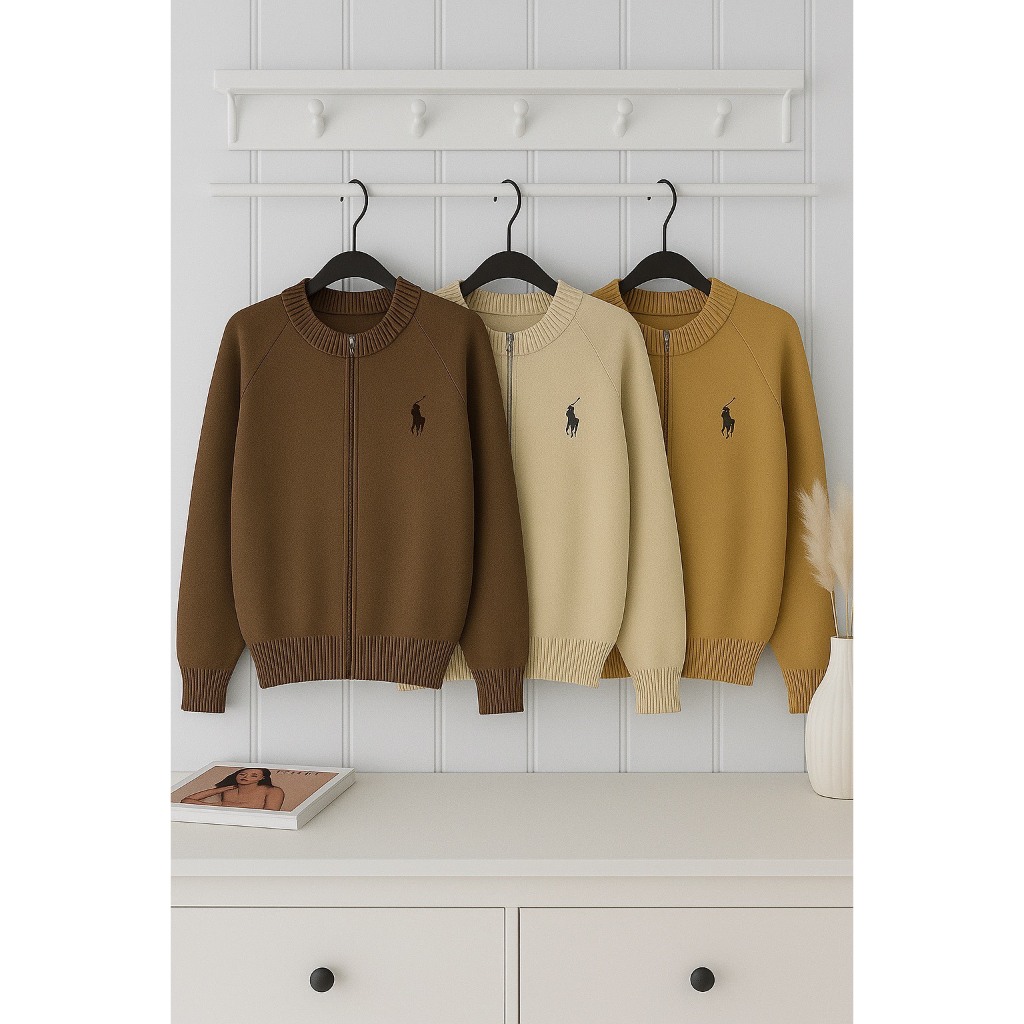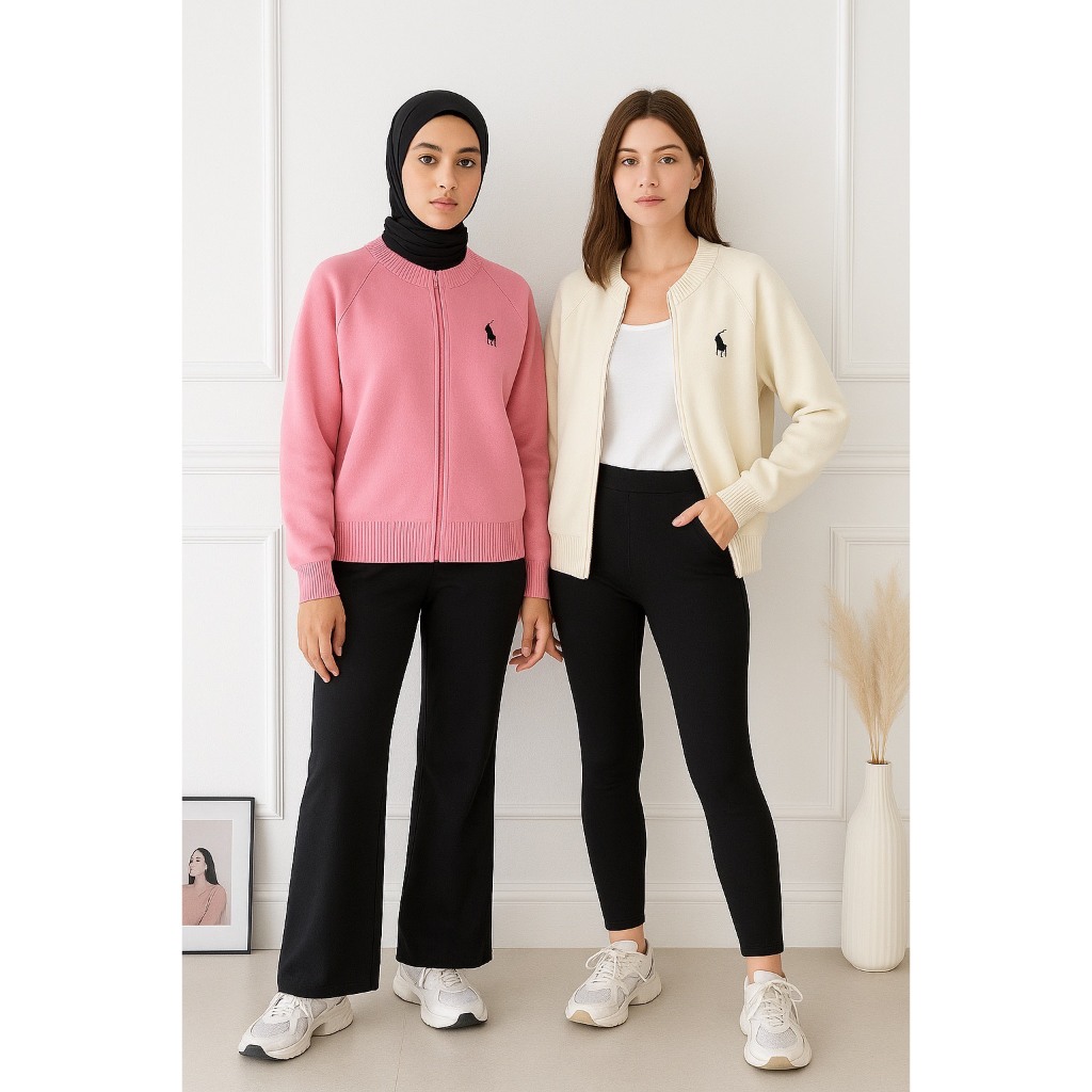 Dailyofprincess Nova Jaket Rajut Wanita Rajut Bordir Kuda Resleting