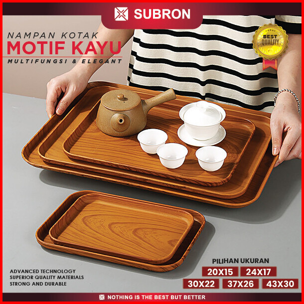 Nampan Baki Tray Plastik Pp Kotak Saji Makanan Minuman Motif Kayu Multifungsi Elegan Cafe Restoran