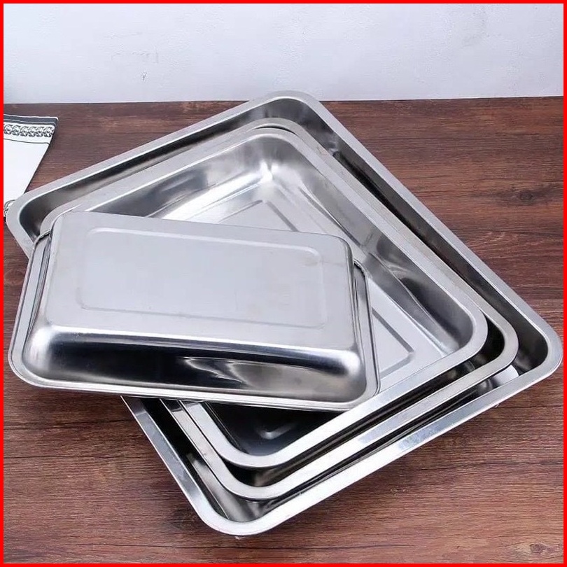 Is - Nampan Stainles - Baki Baking Tray Nampan - Baki Tray Sayur Stainless Persegi - Tempat Kotak Tatakan Saji Serbaguna