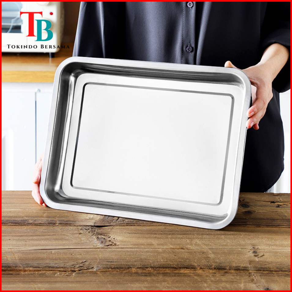Nampan Stainless Persegi Tebal Antikarat Loyang Persegi Baking Tray Stainless Steel Nampan Serbaguna