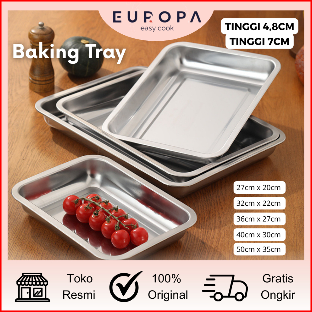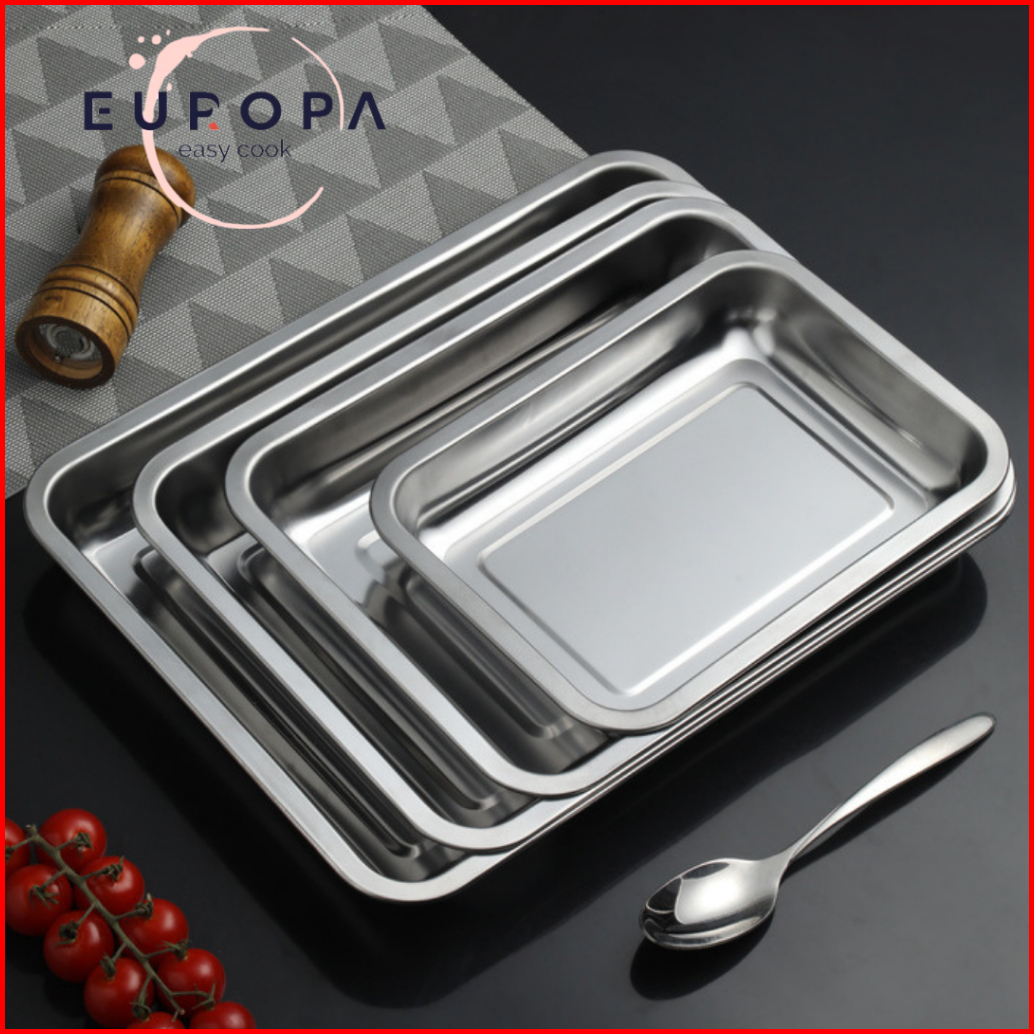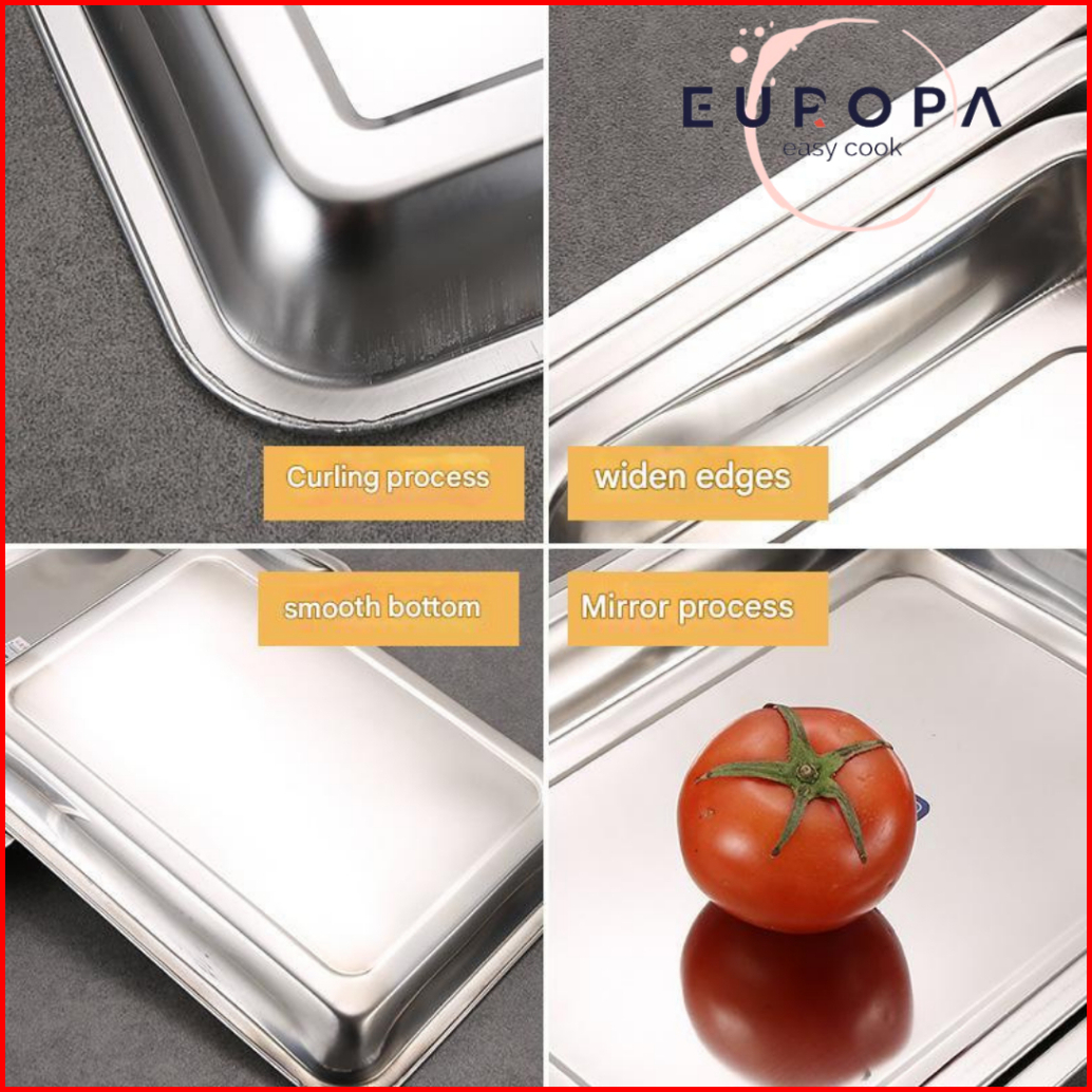 Nampan Persegi Bahan Tebal Anti Karat Baking Persegi Tray Stainless Steel Nampan Serbaguna Europa