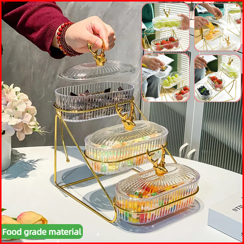 A-mi 3-layer Toples Tempat Buah Snack Makanan Ringan Wadah Buah Dengan Tatakan