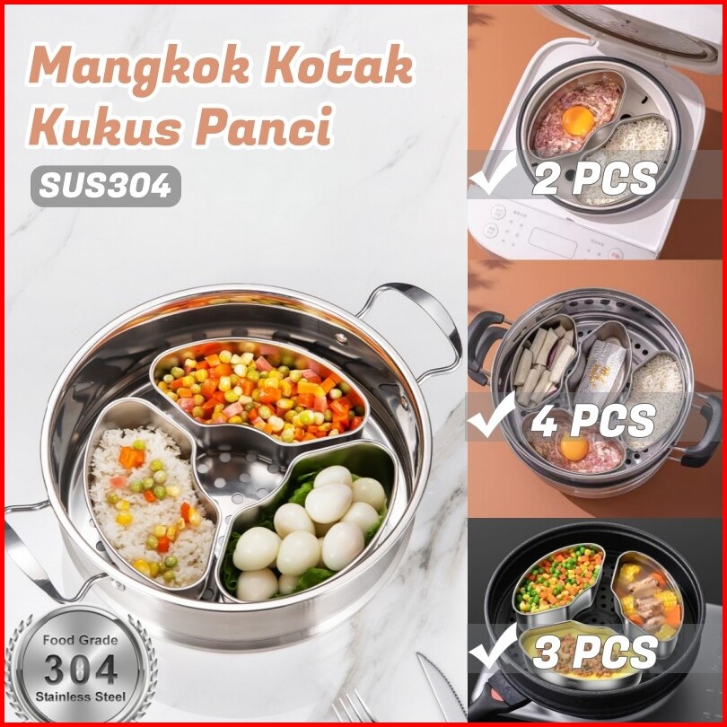 Kotak Kukusan Tahan Karat Wadah Mangkok Bowl Kukus Panci Sus 304 Anti Karat Food Grade Kukusan Steamer