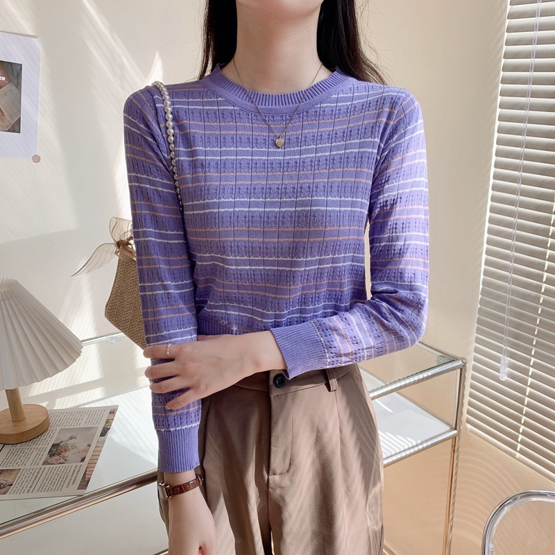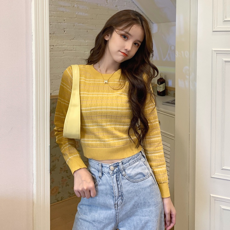 MISS'O BJ1653 Baju Atasan Sweater Knit Rajut Korean Fashion Wanita Lengan Panjang Motif Garis
