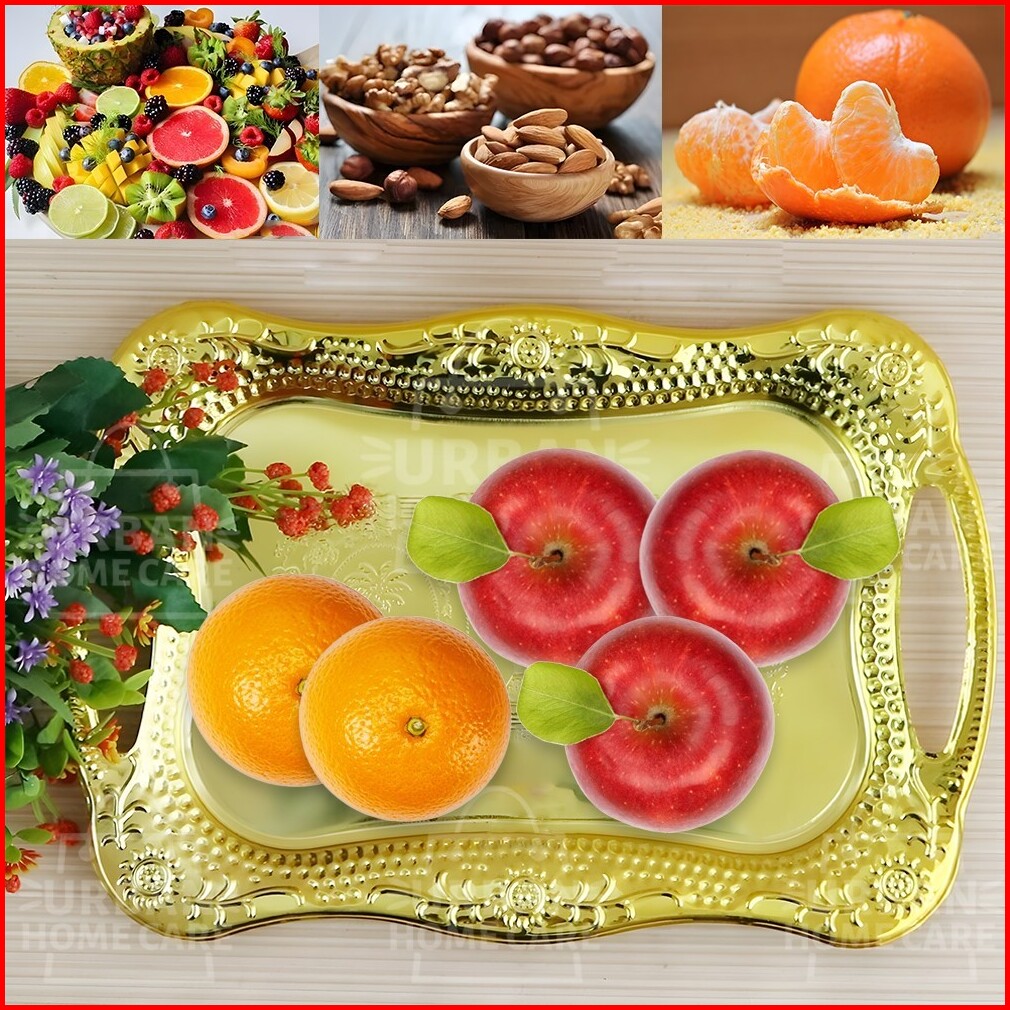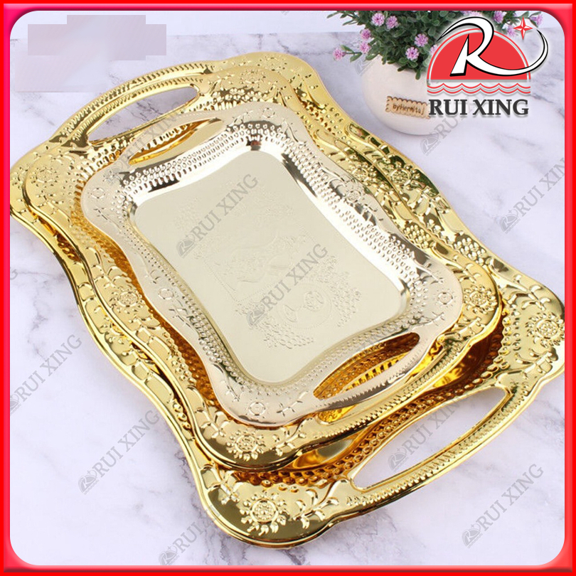 Ruixing Nampan Baki Arab Baki Stainless Steel Kuning Baki Penyaji Gelas Nmpan Arab Ukir Pegangan Baki Tempat Makanan Ole