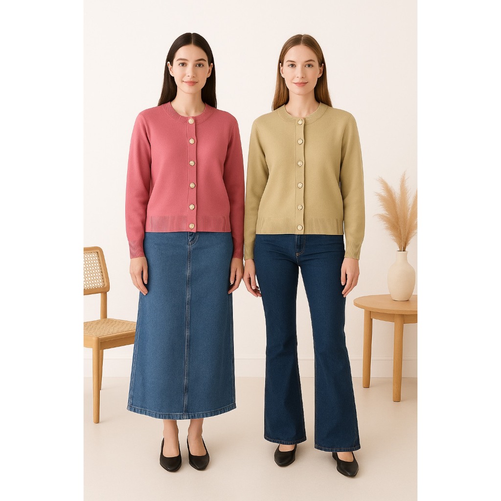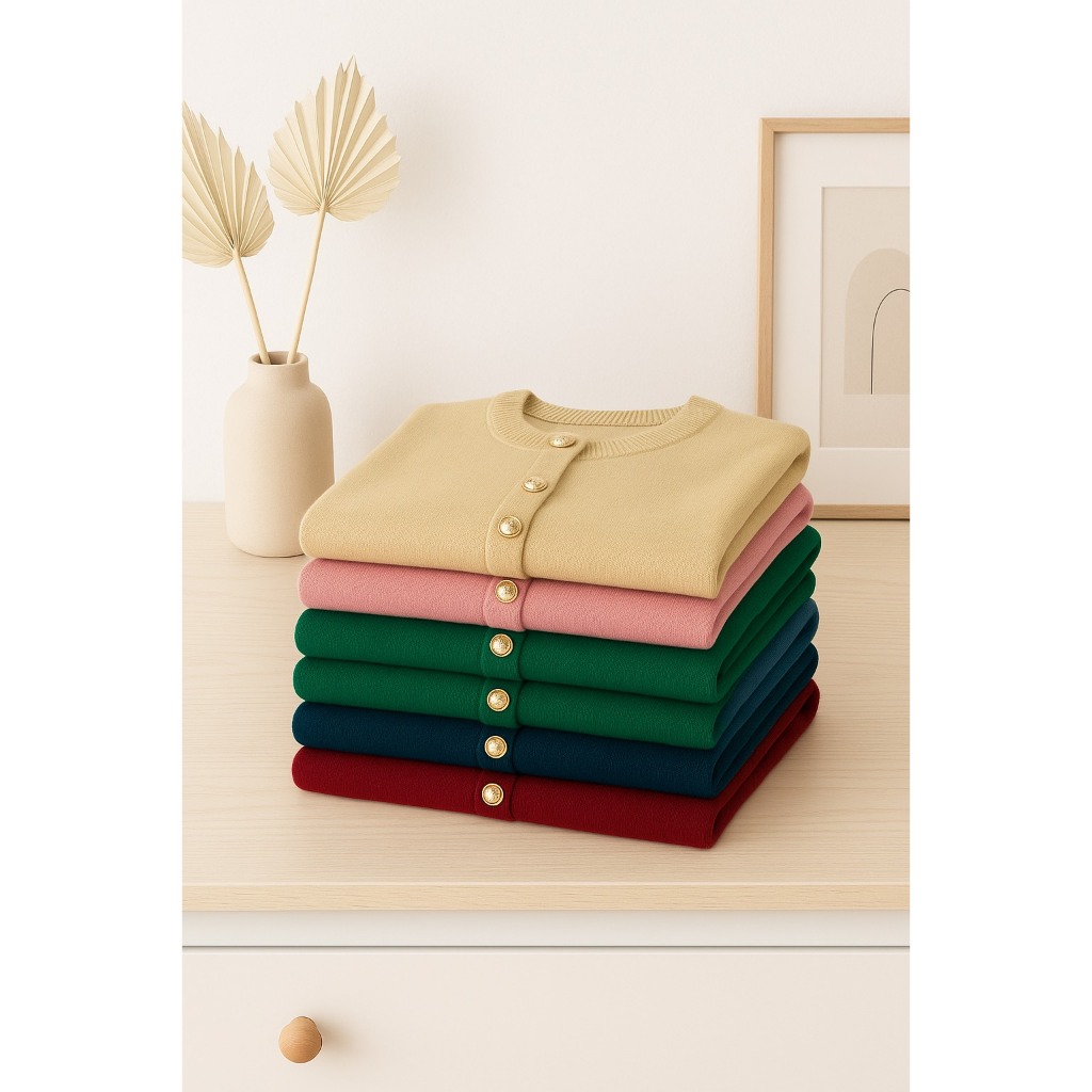 Dailyofprincess Cantika Kardigan Rajut Polos Wanita Kancing Emas