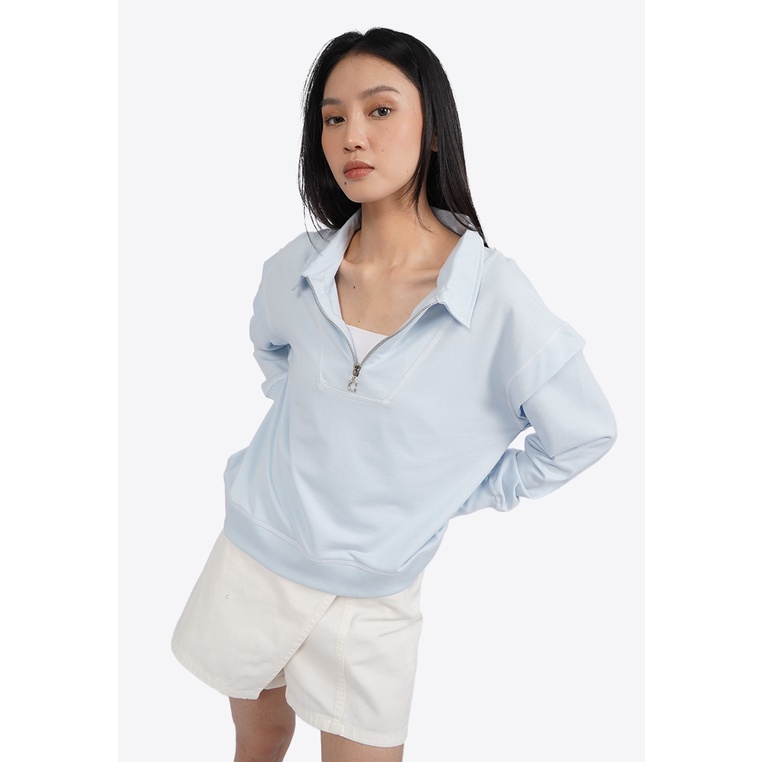 COLORBOX Half Zip Contrast Stitch Sweatshirt Lt. Blue