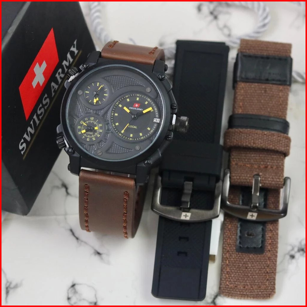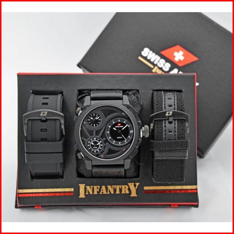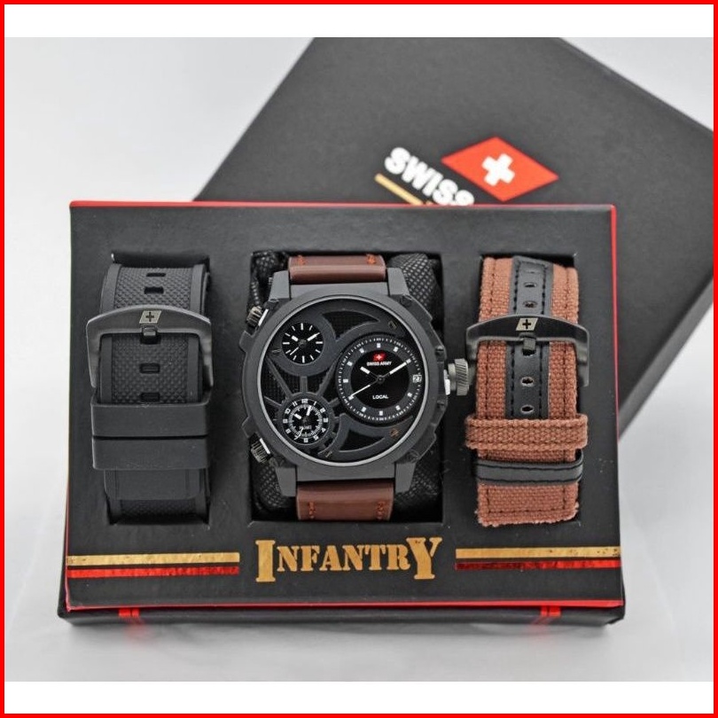 Jam Tangan Pria Swiss Infinity 3time Kulit Set Paket