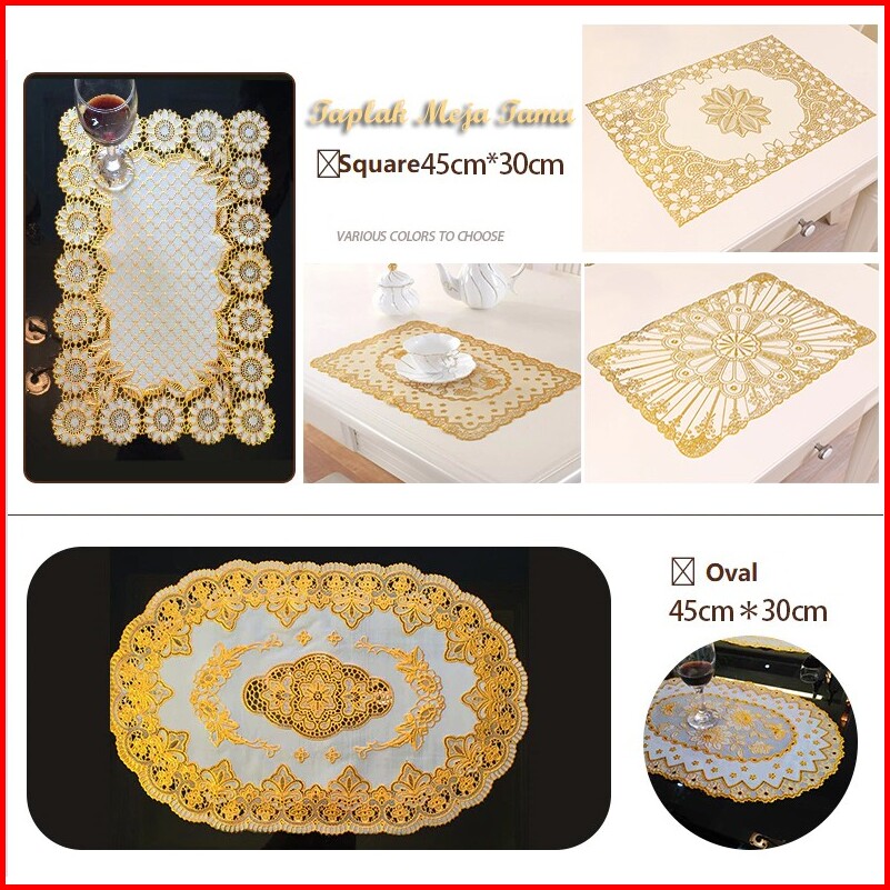 Taplak Meja Tamu Silver Kotak Dan Oval Souvenir Pernikahan Table Mat Ukuran 45 X 30 Cm