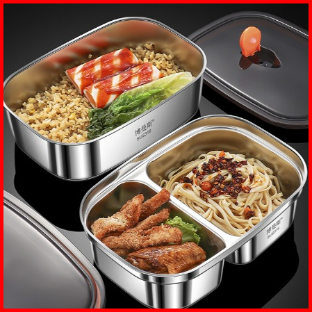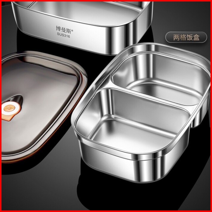 Lunchbox 2 Partisi Stainless 316 Kotak Makan Lunch Box Tutupan Katup Seal Karet Anti Tumpah 2 Sekat