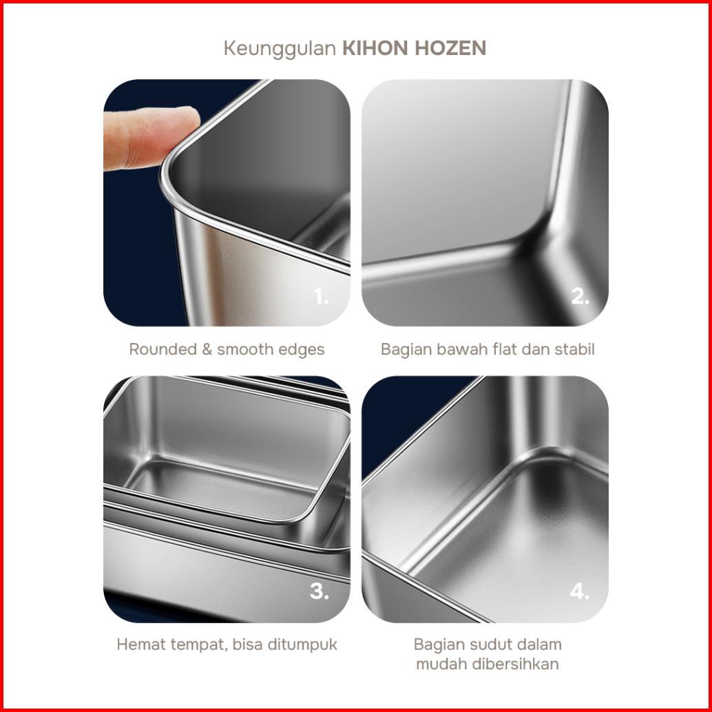 Kihon Hozen Stainless Food Container Wadah Makanan Anti Tumpah Easy To Clean Stackable Sus304