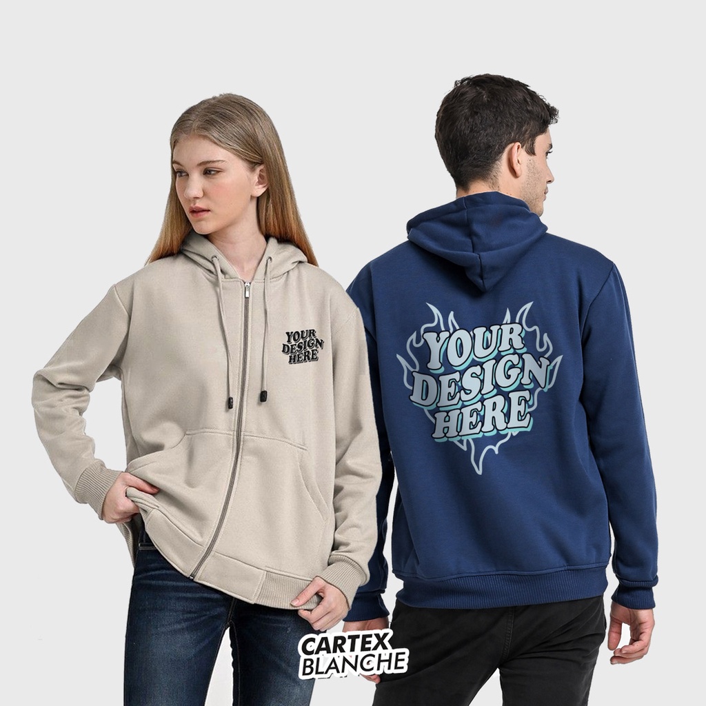CARTEXBLANCHE - Custom Design Sendiri Jaket Hoodie Zipper Sablon / Bordir Unisex Pria - Wanita Size M - XXL