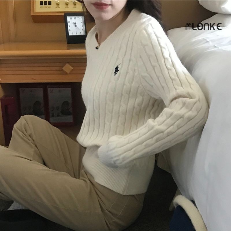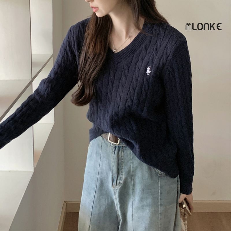 Nlonke - Sweater Rajut Retro Atasan Rajut Wanita V-Neck Rajut Crop Baju Rajut Wanita Lengan Panjang Casual Style