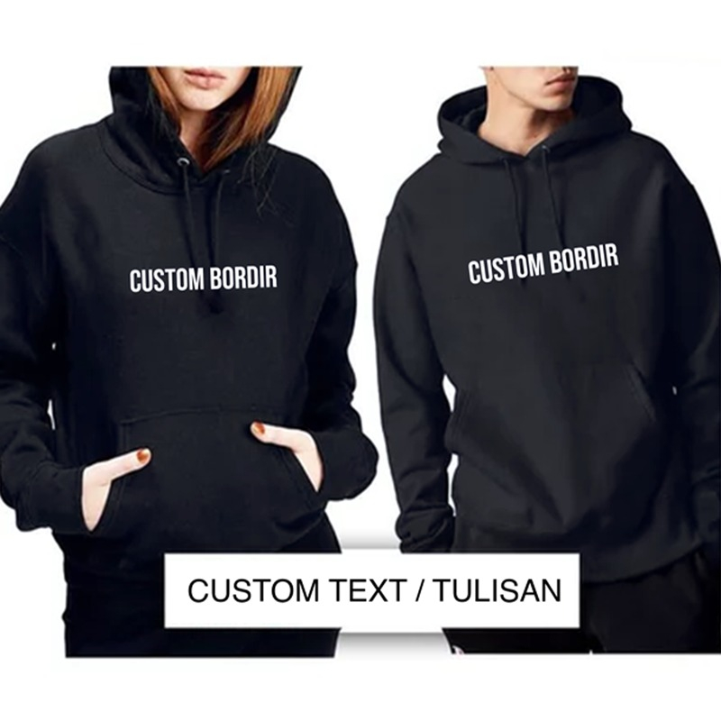 Parisdivarious Sweater Hoodie Jemper (Bordir) Custom Text Bahan Fleece Size S - XXL (Pria & Wanita)
