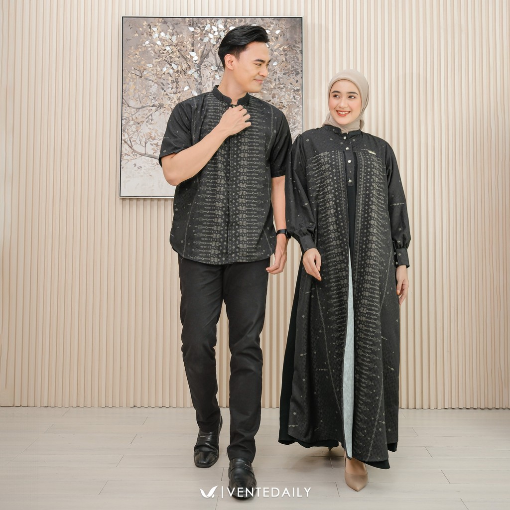 Ventedaily - Launa Couple Baju Pasangan Gamis Kemeja Elegan Outfit Kondangan Couple Suami Istri
