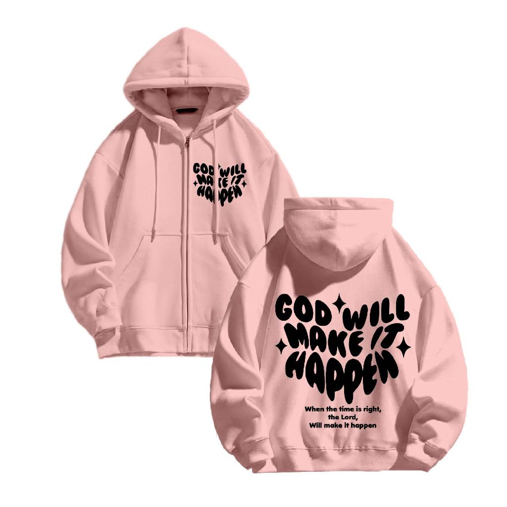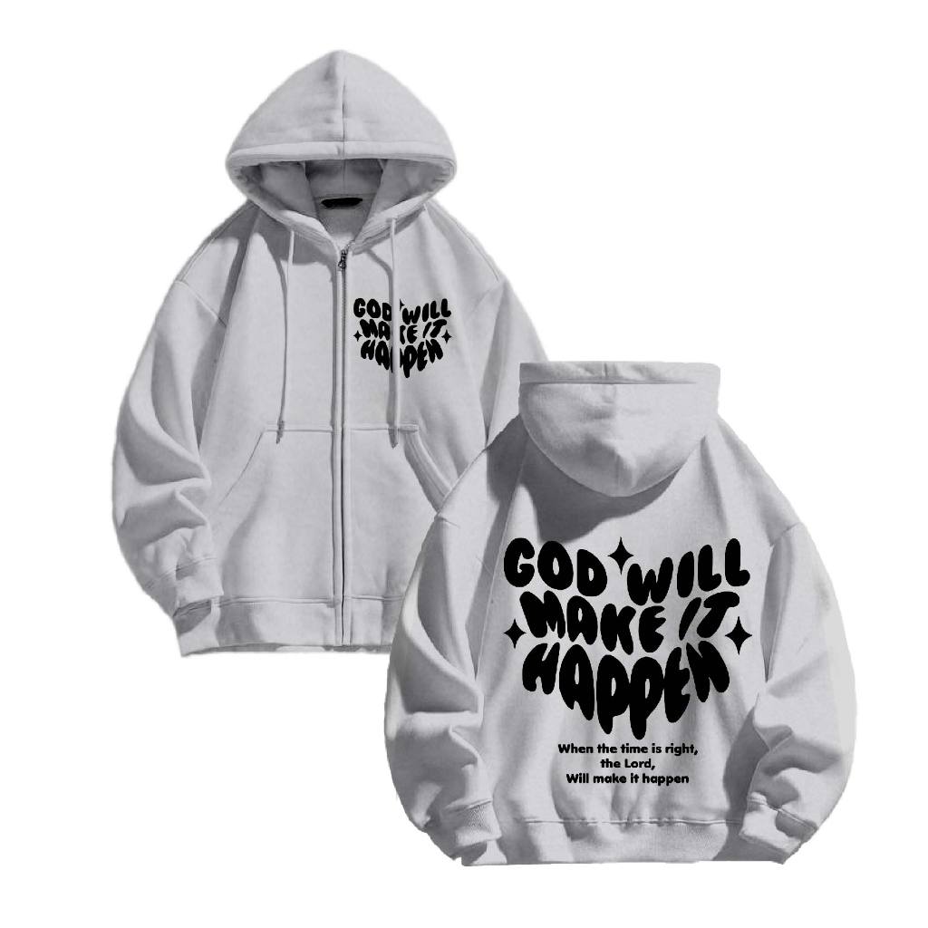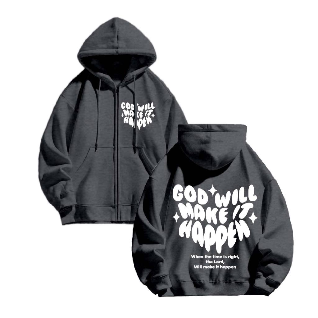 Hoodie Jaket Zipper [JYB] Oversize MAKE IT HAPPEN (sablon) size M-XXL UNISEX pria&wanita