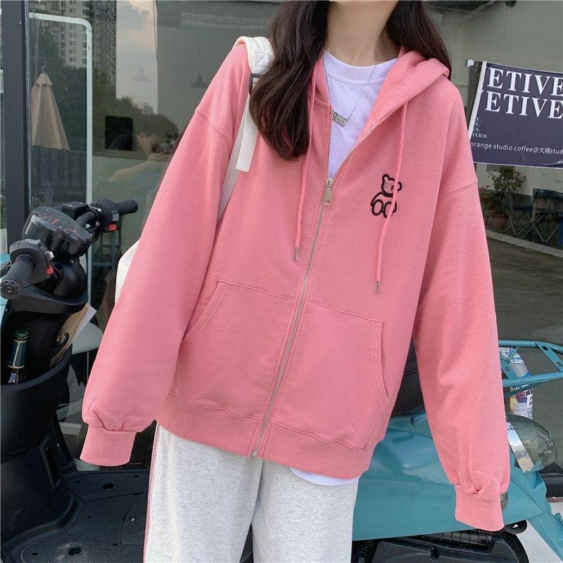 Hoodie Jaket Zipper [JYB] Oversize LINE BEAR (sablon) size M-XXL UNISEX pria&wanita
