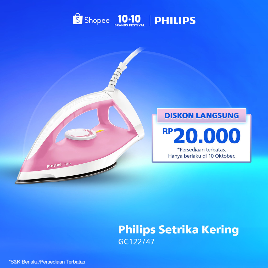 Setrika Philips Diva GC122/47 Pink - Setrikaan promo murah, Tapak Strika Anti Lengket, Tahan Lama