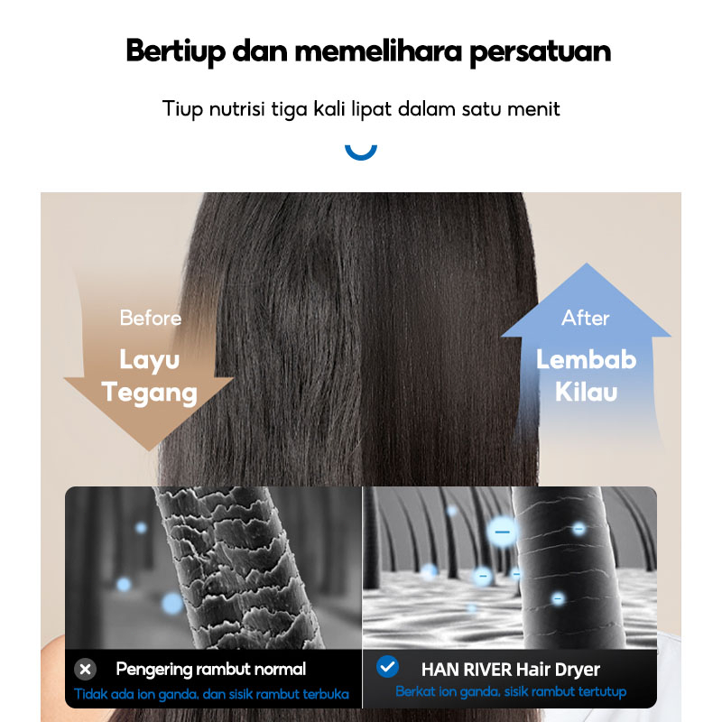 HAN RIVER Surabaya Hair dryer HRHD01BK 800W Cold hot wind pengering Haircare