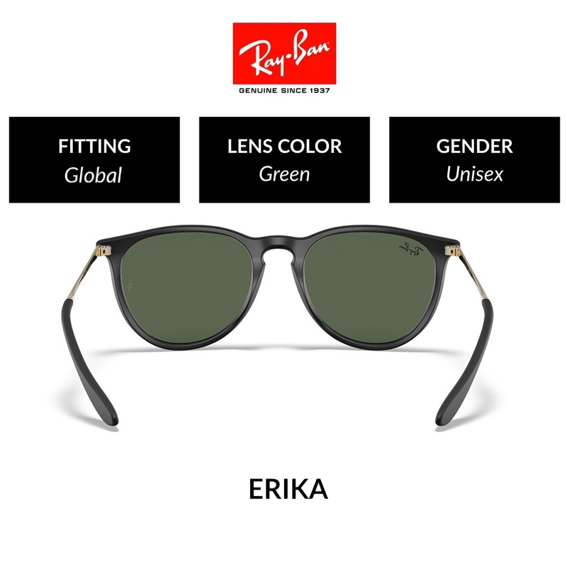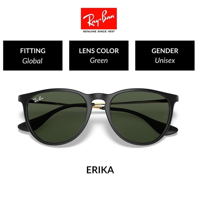 Original Ray-Ban Kacamata Hitam Erika RB4171 Sunglasses Black pria wanita Ori Black Grey