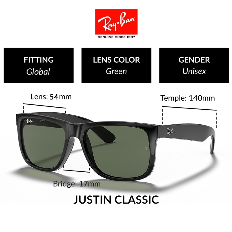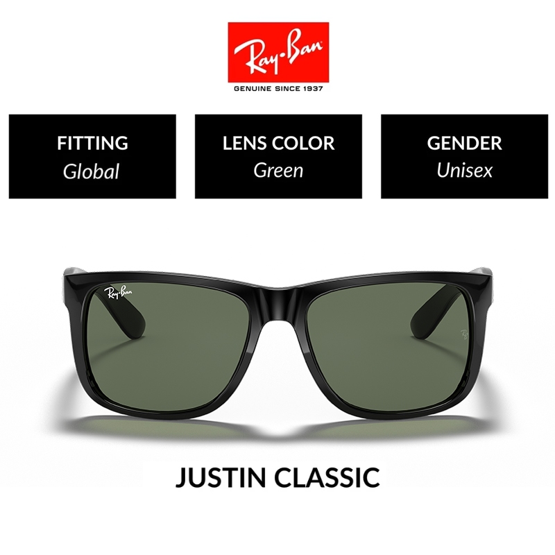 NEW 100 PERSEN Original Ray-Ban Kacamata Hitam Justin RB4165 Sunglasses Black pria wanita Ori Grey Light