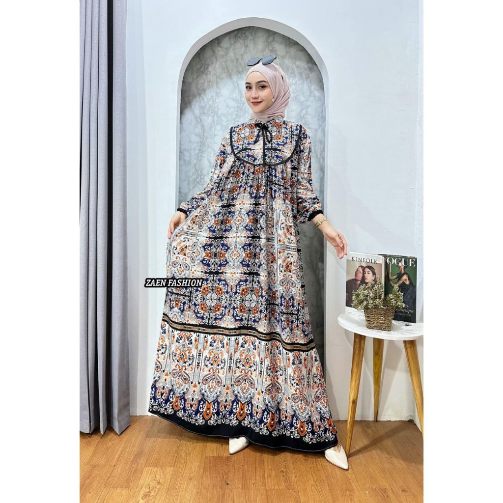 GAMIS BUSUI MOTIF DRESS AKSEN LIST TERBARU GAMIS RAYON PREMIUM GREED A BUSUI
