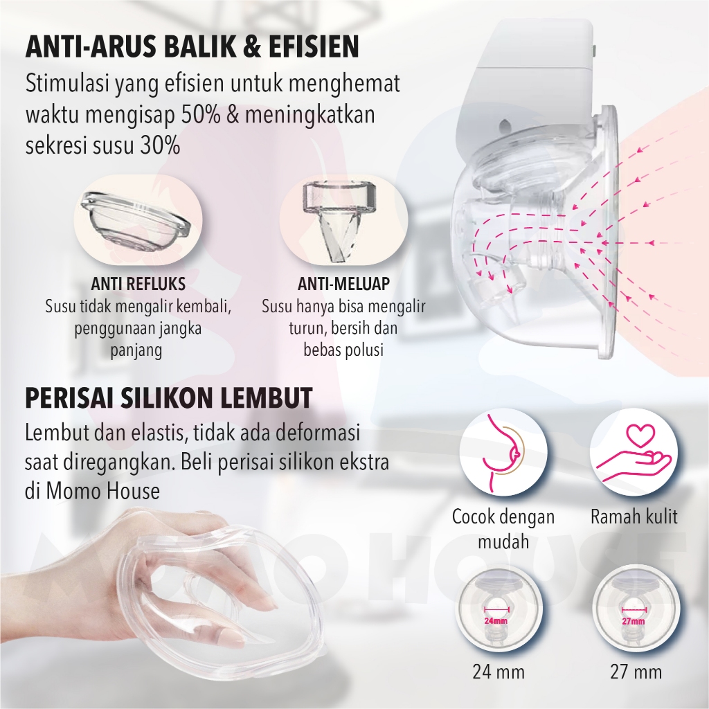 MOMO HOUSE Handsfree Breastpump Handsfree Pompa Asi Eletrick Tanpa Kabel Pompa Asi Handsfree Breast Pump Electric Pompa