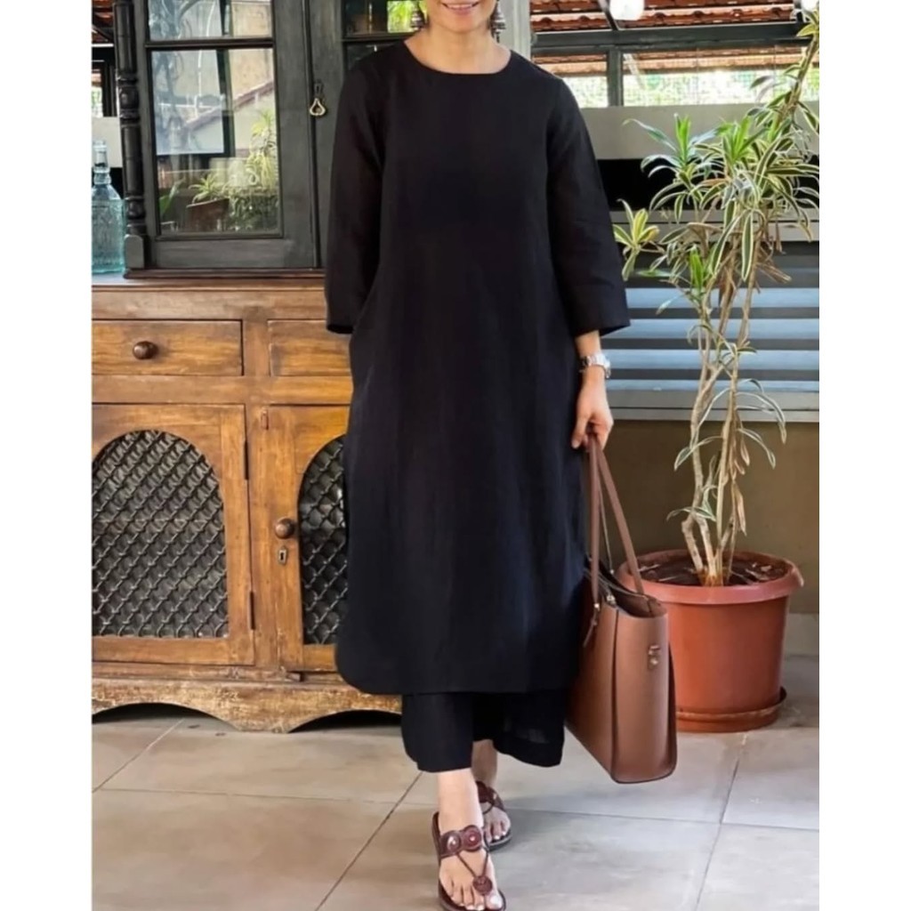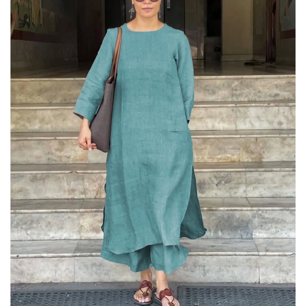 Vallina Outfit - Tunika One Set 2in1 Setelan Kekinian Matt Linen Rami Premium l Stelan Casual Daily