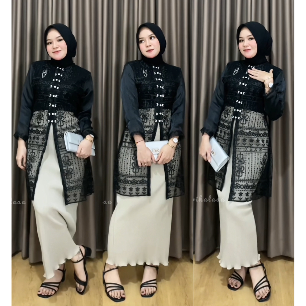 Hadju Tunik Brukat Bordir Sapto / Tunik Brokat Tali Kancing Mutiara Payet Diamond / Baju Kondangan, Wisuda, Seragaman, B