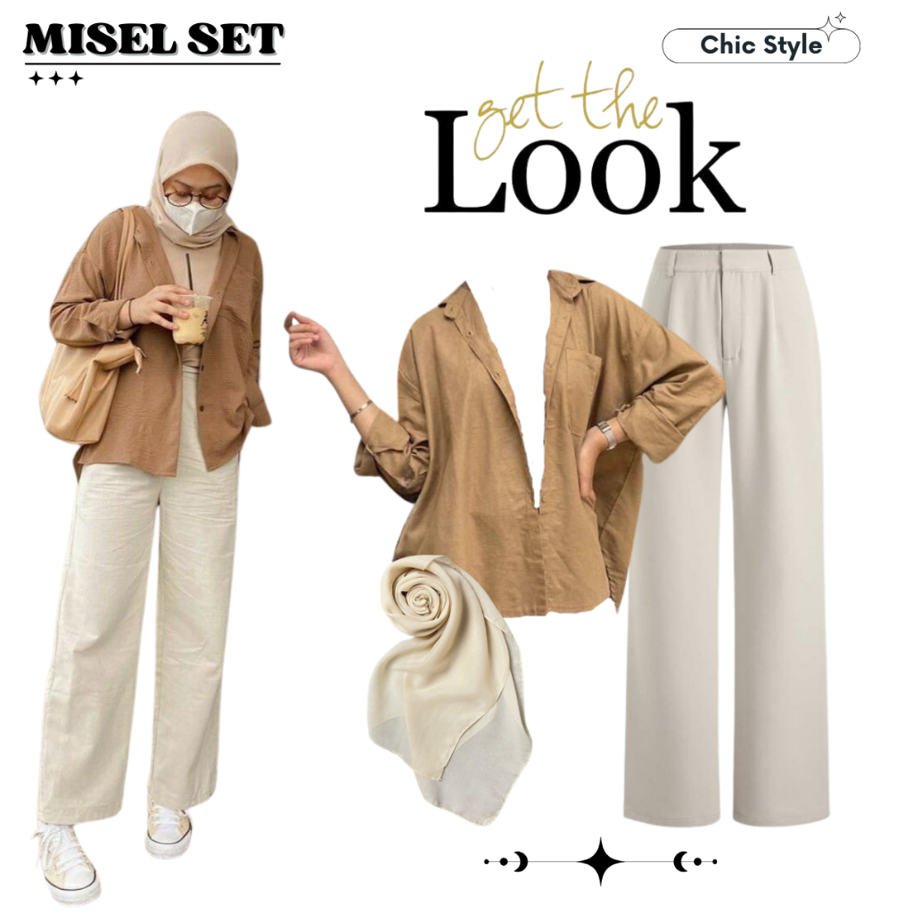 Outfit Casual Perfect Kemeja Linen, Jennie Knit, & Bella Square | Misel Set