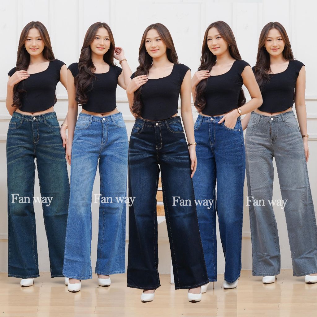 Celana Gombrong - Celana jeans Baggy Wanita High Waist Hitam Loose Fit Korean Style