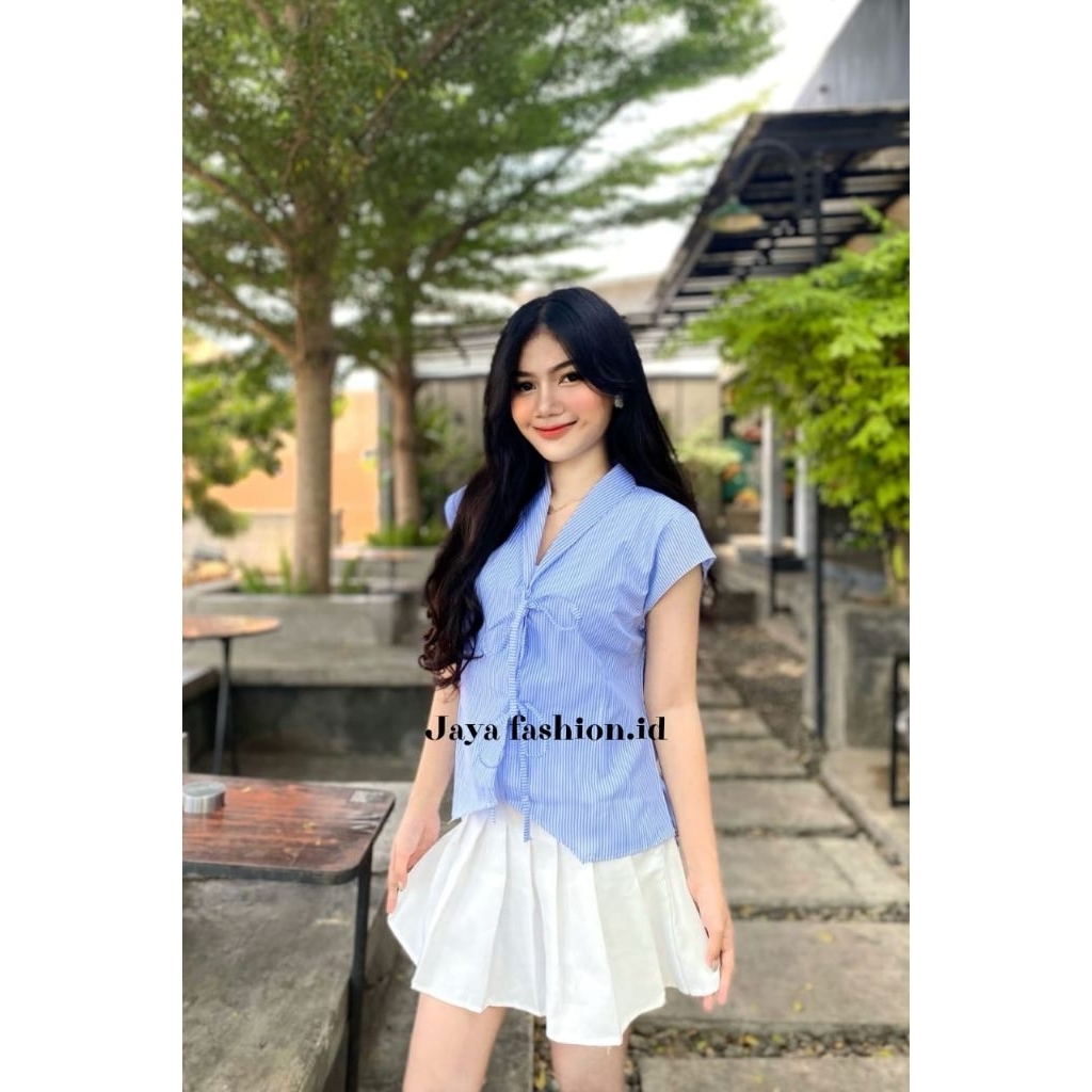 Blaire Kemeja Vest Atasan Wanita Stripe Terlaris