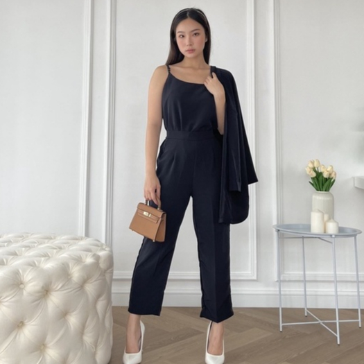 Hana 3 in 1 Set Blazer Lengan 3/4 Celana Panjang Crinkle setelan formal Wanita Atasan Simple Linen Casual Baju