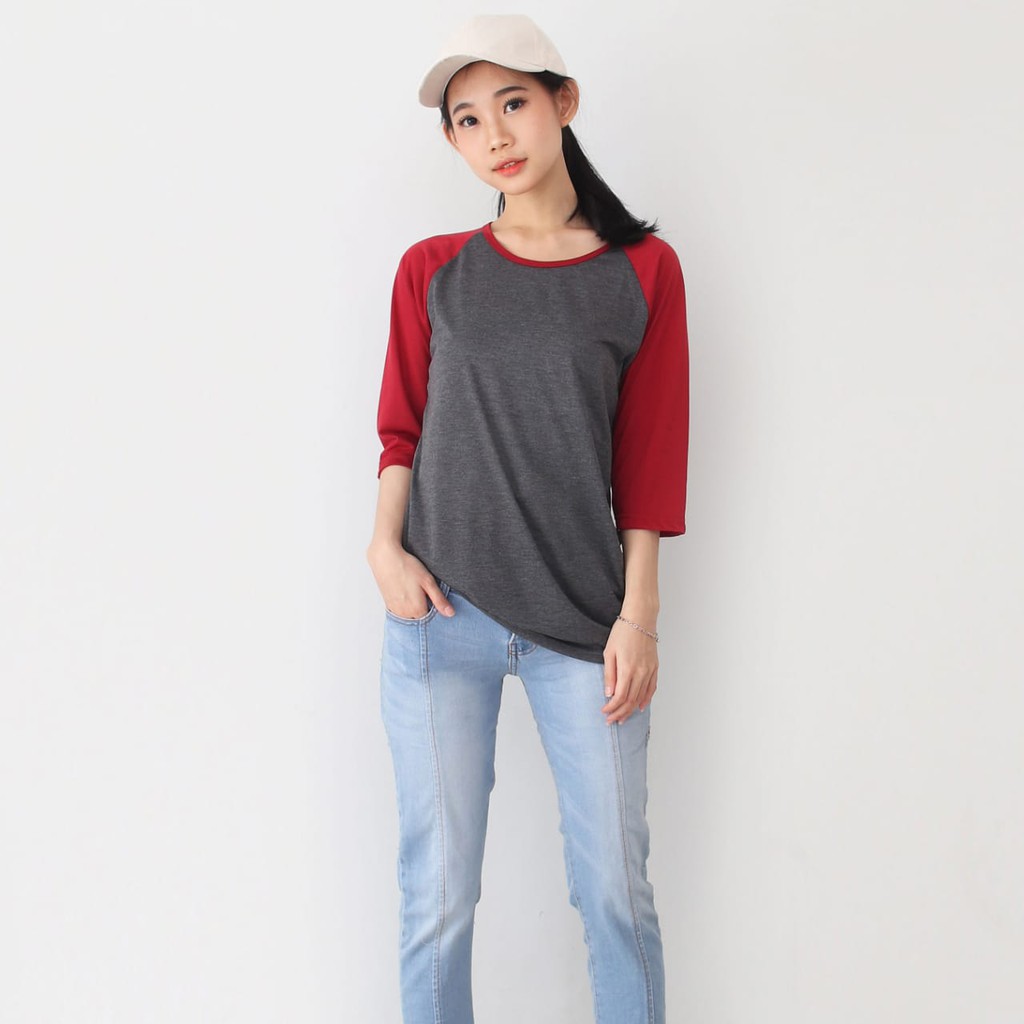 Kaos Raglan Lengan 3/4 Abu Tua Polos Reglan Wanita