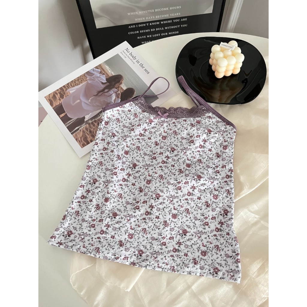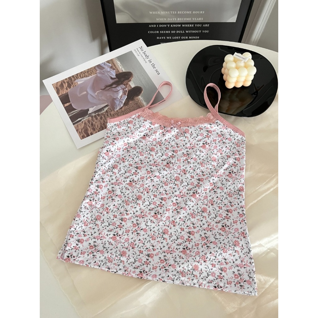 BR1734 Baju Tanktop Fashion Wanita Corak Bunga Elastis Sexy Square Knit Fashion Korea