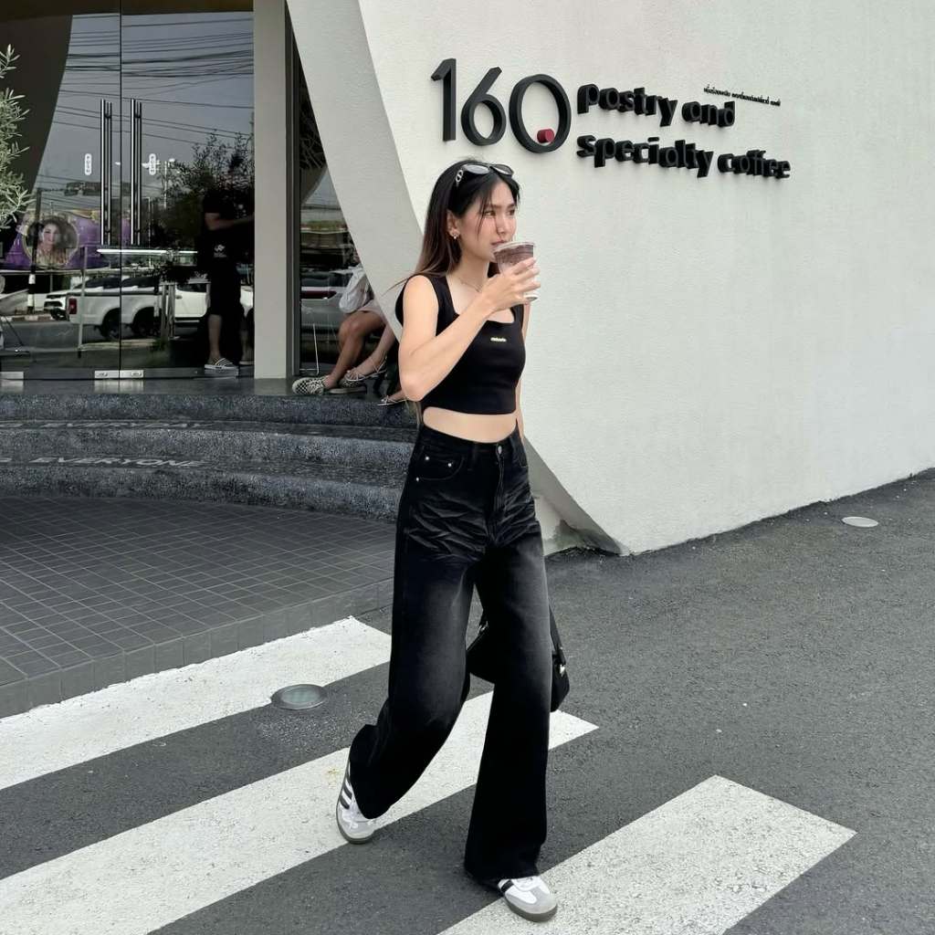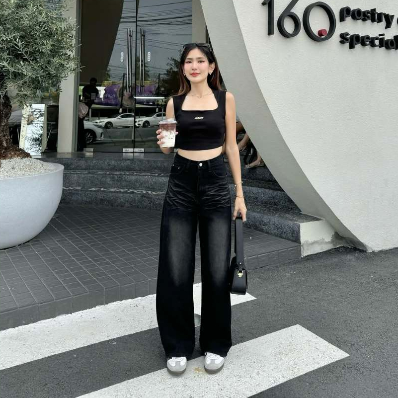 Celana Jeans Highwaist Oversize Baggy Loose Wisker Highwaist Jeans Retro Korean Vintage Denim Unisex