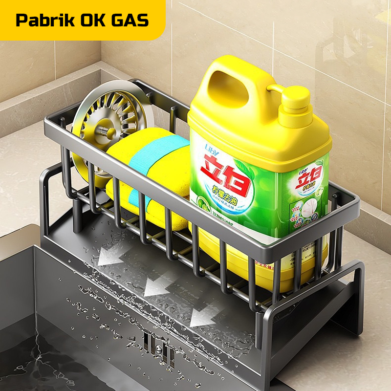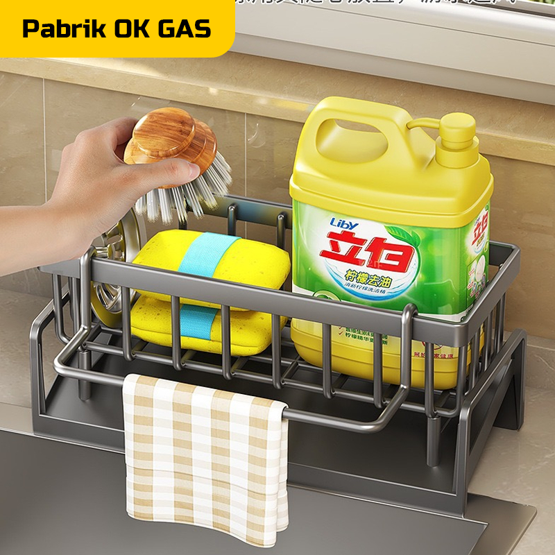 POG - Rak Spons Sabun Cuci Piring Rak Wastafel Plastik Multifungsi Tempat Pengering Spons dengan Holder Kain