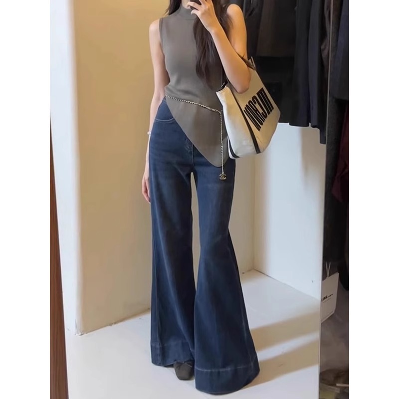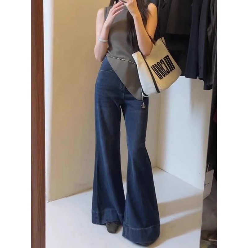lulu-jeans Highwaist Celana Cutbray Jeans Wanita Biru tua Import--Denim melar,Panjang