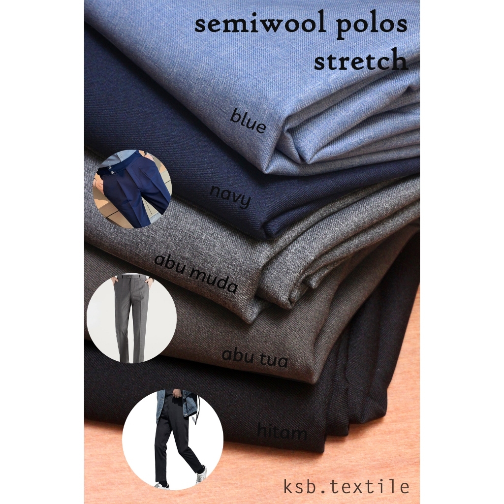 Kain Semiwool Stretch Polos / Bahan Celana Formal Anklepants Blazer Officewear / Bahan Celana Kantor Premium Grade A / E