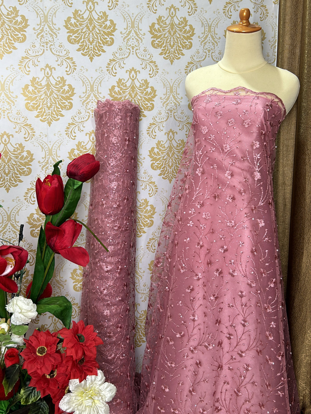 TILE AKAR MUTIARA GLITER / BAHAN BROKAT / KAIN BROKAT / TILE / BROKAT PREMIUM