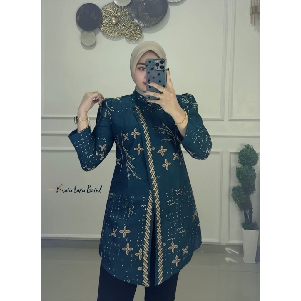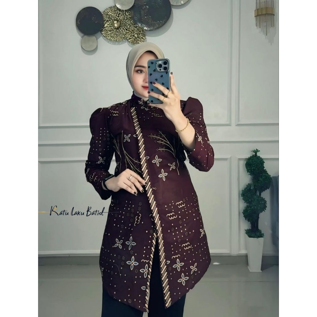 Atasan batik wanita modern lengan panjang puffy blouse model kebaya janggan by ratu laku batik baju formal