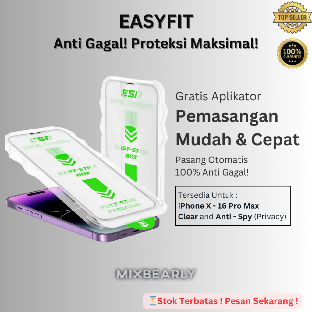 (Premium) EasyFit iPhone 16e 16 Pro Max 15 Pro Max 14 Plus 13 Mini 12 11 X Xs XR Tempered Glass Clear Anti Spy Privacy Privasi | Anti Gores Kaca - Screen Guard Protector Superfit Magic Box John