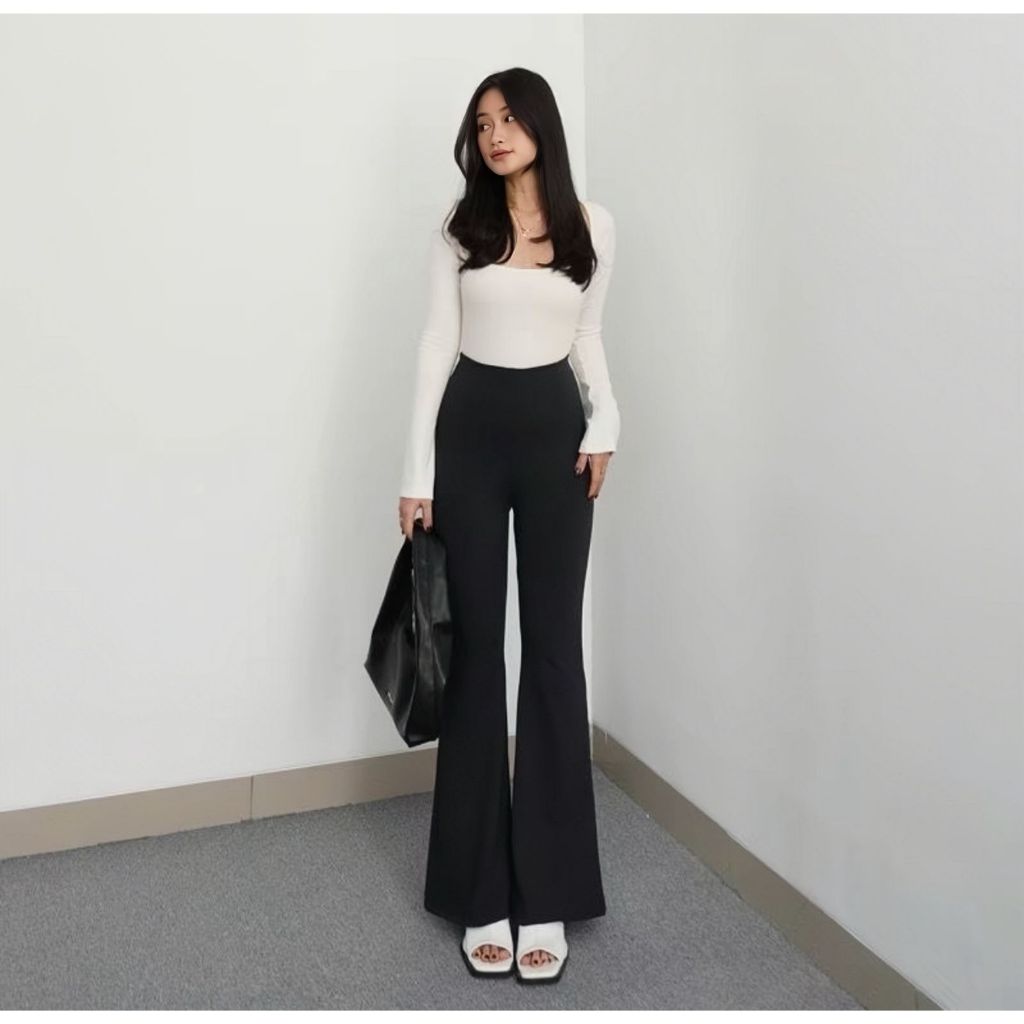 Celana Fit And Flare Pants Cutbray Scuba Pinggang Highwaist Bahan Stretch Melar Elastis Kulot Cutbray Scuba Jumbo