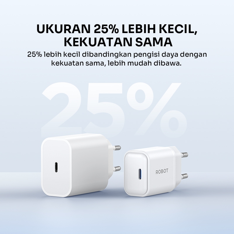 [FOR LIVE] ROBOT Charger Fast Charging 20W Adaptor Charger 3A Kepala Charger Mini Type C Lightning with GaN Chip RT-P20S Original - Garansi 1 Tahun
