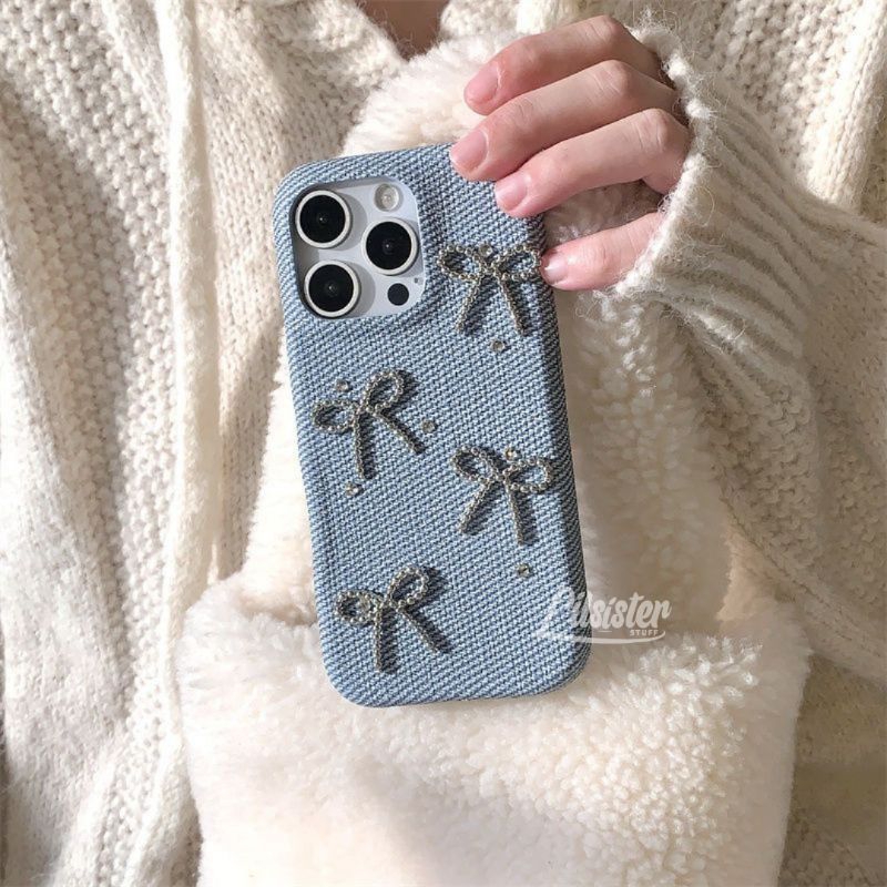 ◤HOT◢ LILSISTERSTUFF | Jolly Blink Bow Coquette Denim Iphone Case (13 14 15 16 PRO PROMAX)