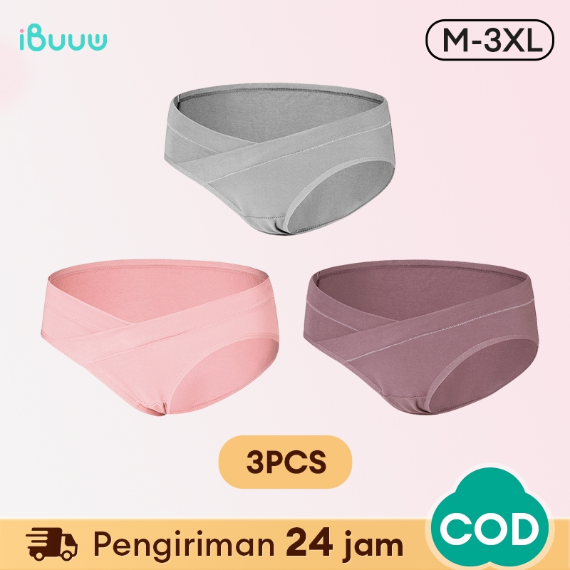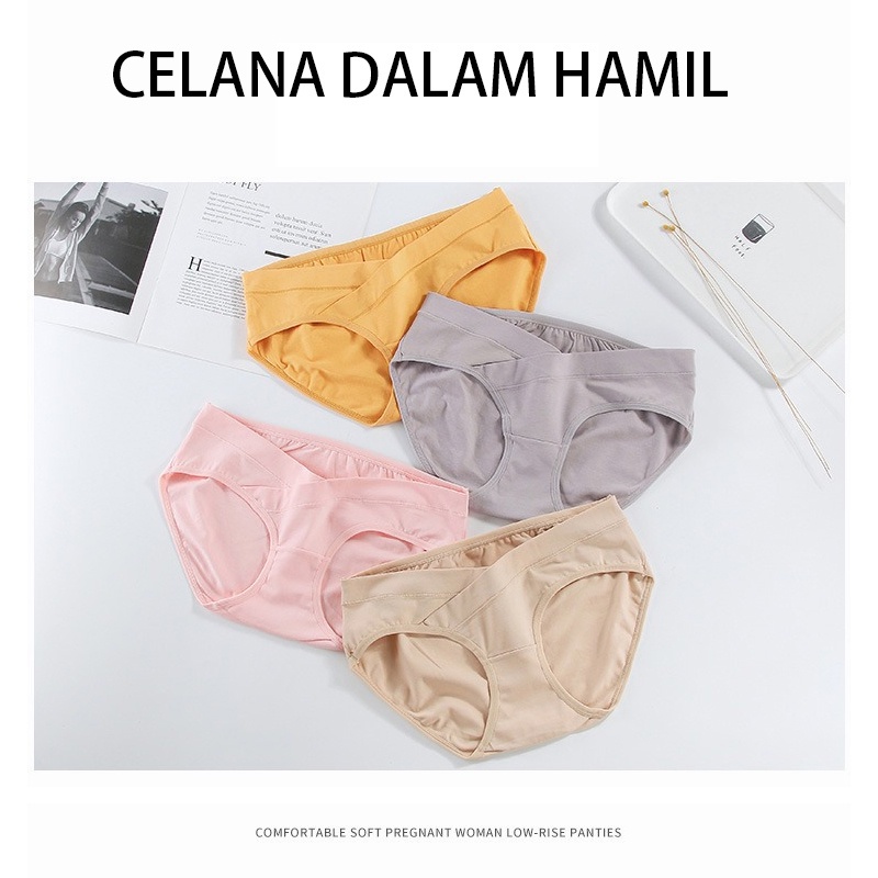 3PCS Low Waist Celana Dalam Hamil Jumbo Bahan Katun Briefs Elastis CD Maternity Panty 20020