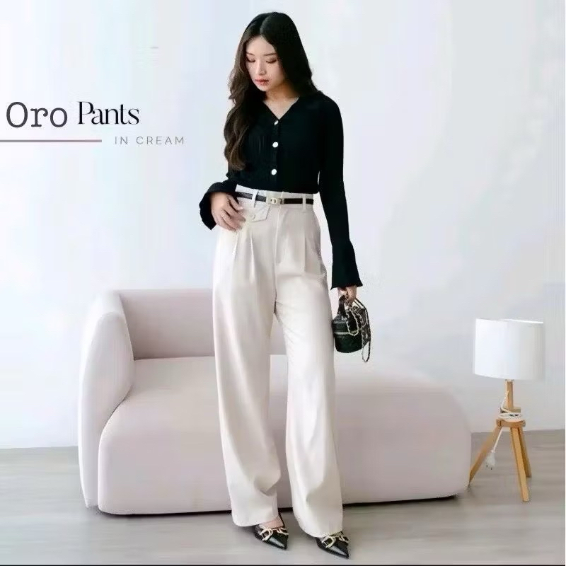 ORO PANTS Highwaist Loose Pants Trousers - Celana Anti Kusut Premium