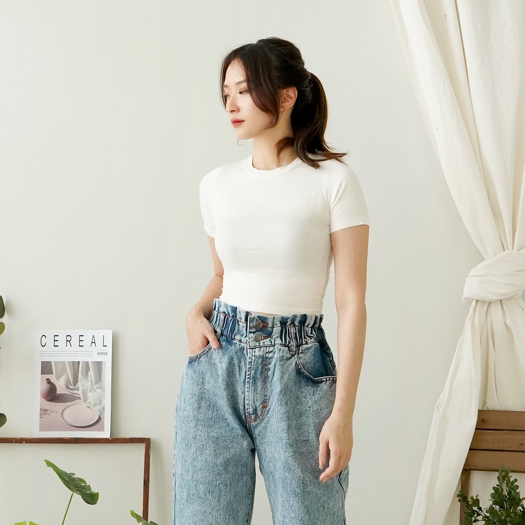Crop Top Basic Casual Sexy Crop Top Kaos Crop Tee Baju Atasan Wanita 025