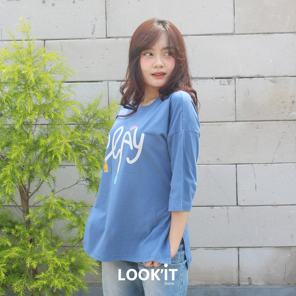 Lookit - Kaos Atasan Baju Oversize Wanita Slit Samping With PLAY Soft Cotton Combed Nyaman Santai Casual