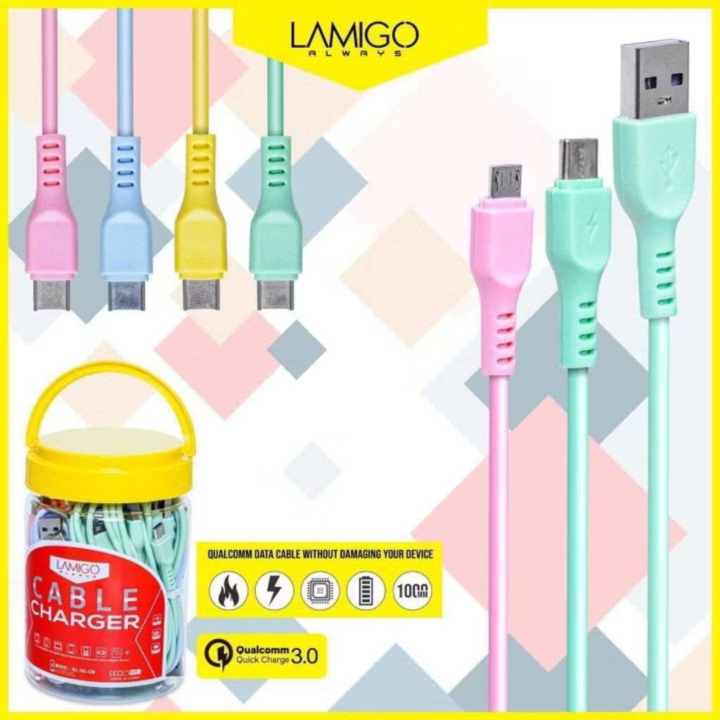 (LMO) Kabel data macaron LAMIGO B200i - 1 Toples Isi 20pcs - Micro & Type C - Warna Pastel Lucu